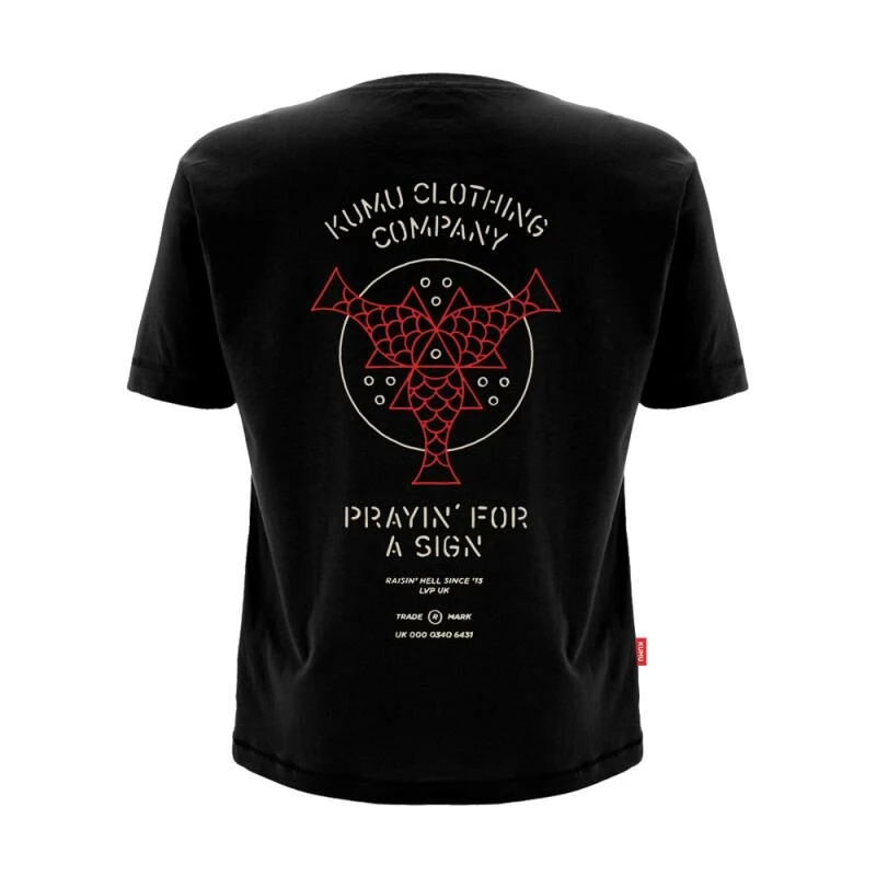 Soms hebben we gewoon een teken nodig. Verhoogd borduurwerk en handgetekende afbeeldingen op onze superzachte 140 grams stof met ingeweven lipjes aan de zijkant. Die sessies waarin de tijd dringt en we gewoon ‘een teken’ nodig hebben om de dingen om te keren. Zie het als een manier om de karpergoden aan je zijde te houden. Nieuwe gefacelifte materialen en nieuwe geweven zoomlabels. Gemaakt in Groot-Brittannië. Ook geschikt voor het dragen in het normale dagelijkse leven. Zeer stoere t-shirts van het merk Kumu.