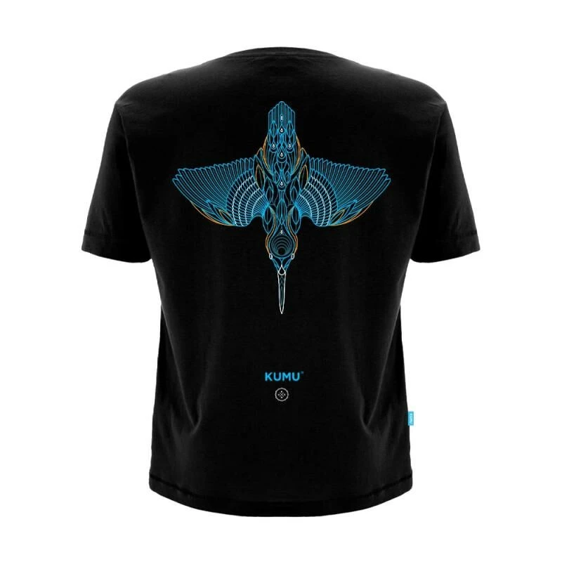 Kumu T-Shirt Take Flight, mega ruige print van een ijsvogel op de bekende t-shirts van Kumu