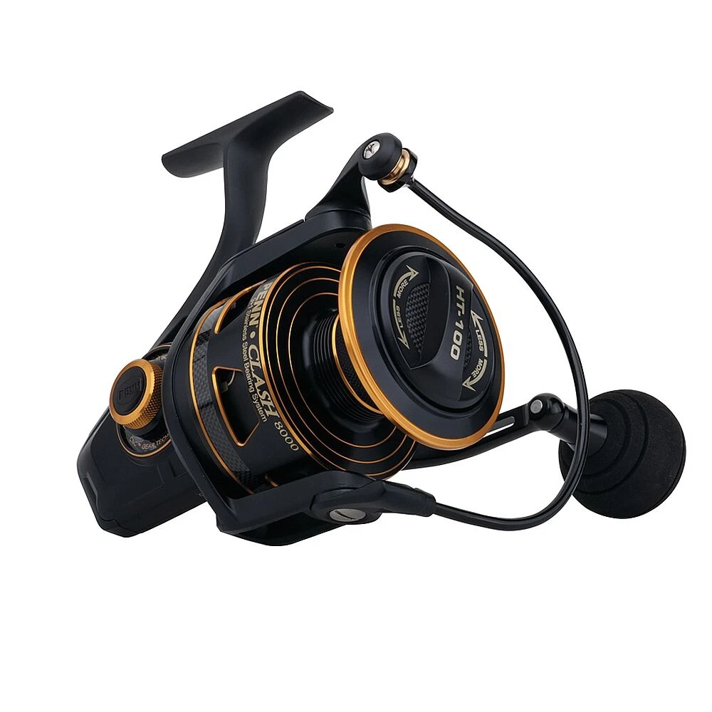De PENN® Clash® heeft alles wat men mag verwachten van een legendarische fabrikant zoals PENN. Van binnen naar buiten maakt het tandwielmechanisme gebruik van onze Dura-Gear technologie, die een steviger en duurzamer tandwiel biedt. 9 afgesloten lagers zorgen dat alles op één lijn blijft en vrij kan bewegen, terwijl een volledige stalen behuizing verdraaiingen door grote weerstandskrachten voorkomt. Andere eigenschappen zijn o.a. een dikke aluminium beugel, langzaam oscillatiesysteem voor een perfecte lijnligging, Line Capacity Rings, en een spoel die geschikt is voor gevlochten lijnen.