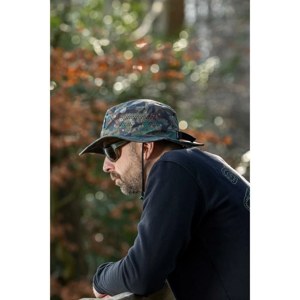 De Trakker TechPro Camo Boonie Hat beschermt je tegen warm weer dankzij een 360 graden brede rand die je beschermt tegen de zon, en een verstelbaar trekkoord voor een goede pasvorm. Dankzij de geïntegreerde ventilatieopeningen blijft je hoofd droog en koel. TechPro – Ultieme prestaties in alle weersomstandigheden.